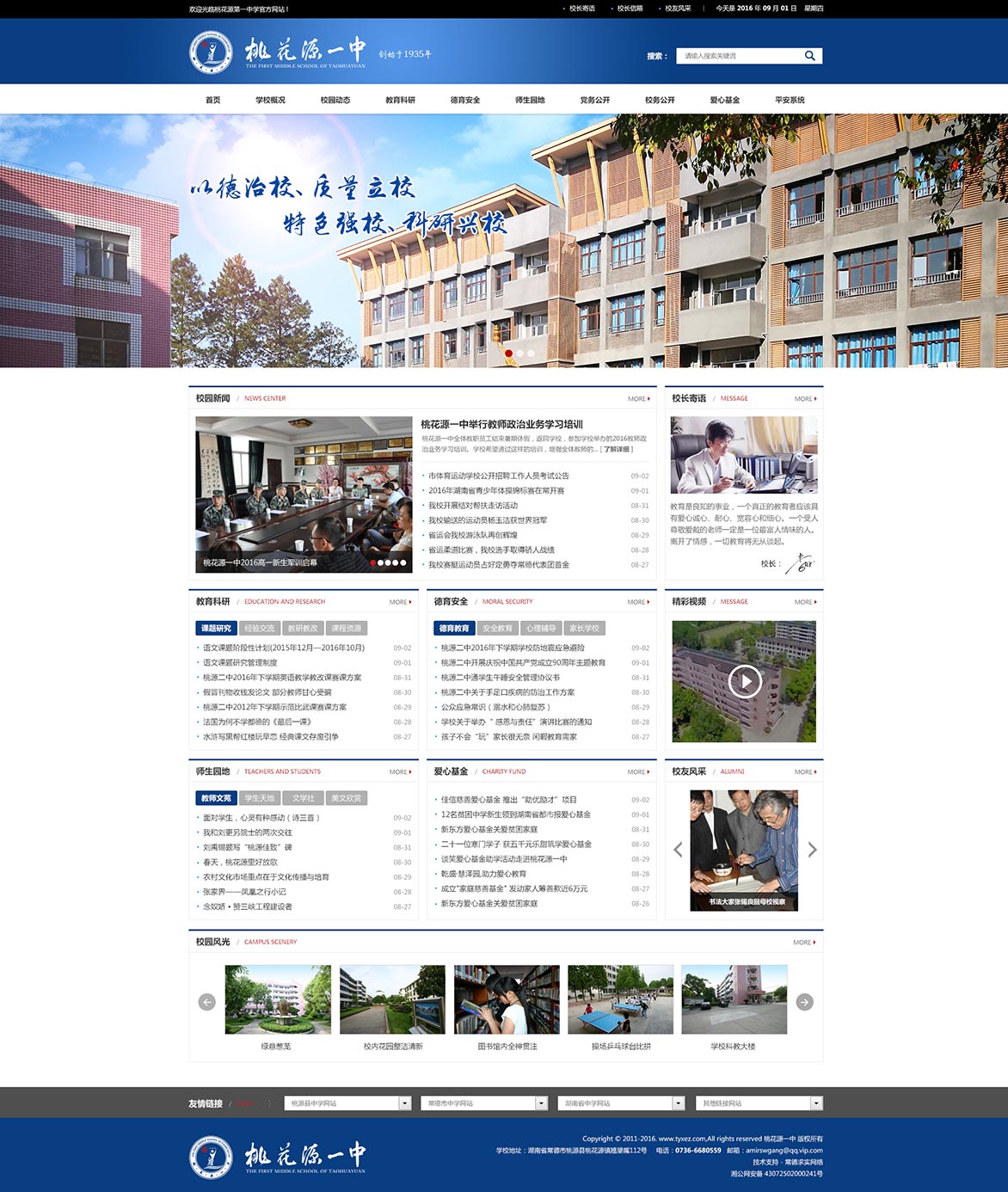 沅水之濱,桃花源里,有一所名冠三湘的學(xué)校。沅水不息,為她注入了不竭的發(fā)展動力;屈子行吟,為她增添了濃郁的人文氣息。在這里,亭臺樓閣匠心獨運,小橋流水相得益彰,古樹名花錯落有致,花馥書香交洽融匯——這就是被譽(yù)為“桃花源里一奇葩”的桃花源一中。